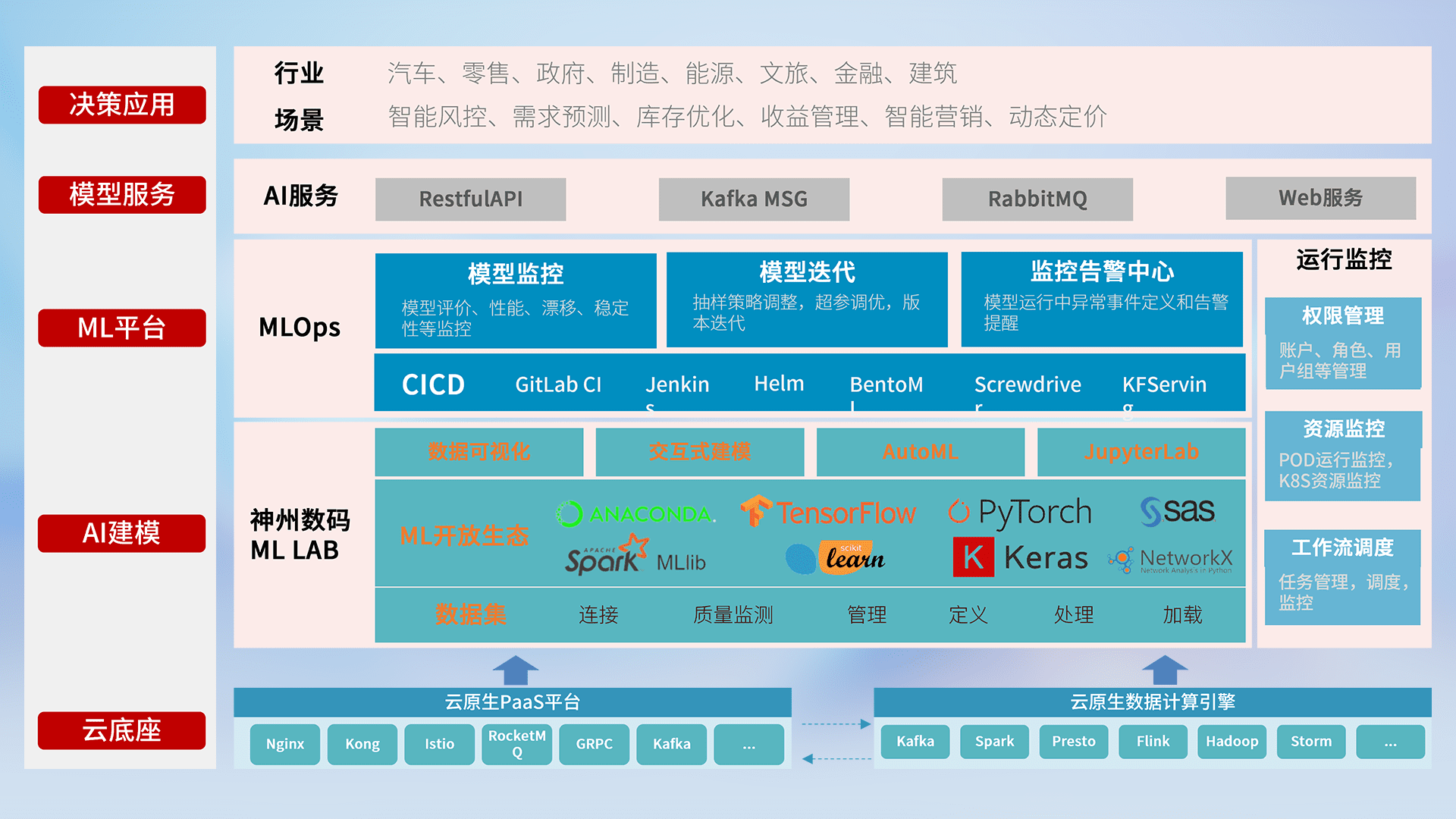 数据+模型双引擎驱动,,面向智能服务场景,,,快速灵活利用AI技术,,,,支持业务决策,,,助力企业智能化转型破局。。。。